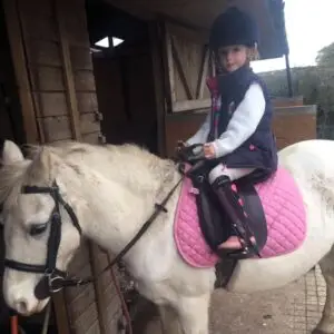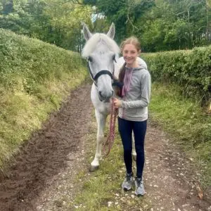 Estelle is thirteen and lives in the Lake District. Estelle lives at home on her family’s farm, and they also breed showjumping horses and ponies on a small scale for Estelle to compete.